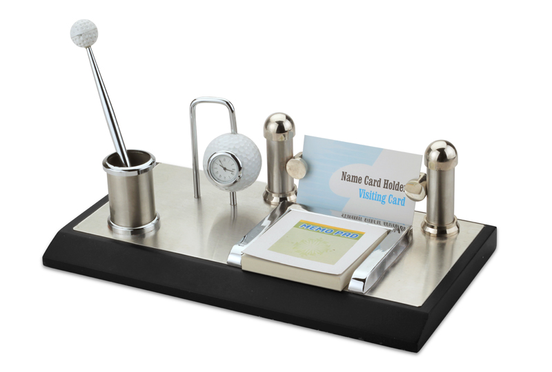 HomeCorporate gifts & GarmentsDesktopDesktop ItemBTC – 386 BTC – 386 Category: Desktop Item Description Product Description Product ID : BTC - 386 Product : BTC - 386 Descriptions : Memopad, V-Card, Pen & Golf Clock Product Size in (mm) (lbh) : 279 x 152 x 122 Finishing : Silver, Wooden Packaging : Corrugated Heavy Boxnd Min. Qty : 15 Pieces Share this Related products BTC – 457 BTC – 4211 BTC – 397